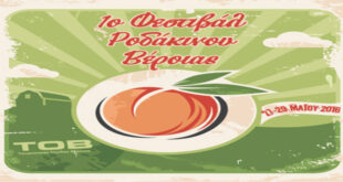 Από 27 έως 29 Μαΐου 2016 θα πραγματοποιηθεί στη Βέροια το 1ο Φεστιβάλ Ροδάκινου. Το Φεστιβάλ διοργανώνεται από τον Τουριστικό Όμιλο Βέροιας σε συνεργασία με την Κοινοπραξία Συνεταιρισμών Ομάδων Παραγωγών …